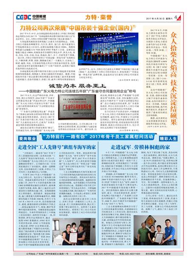 力特公司再次荣膺“中国吊装十强企业(国内)”